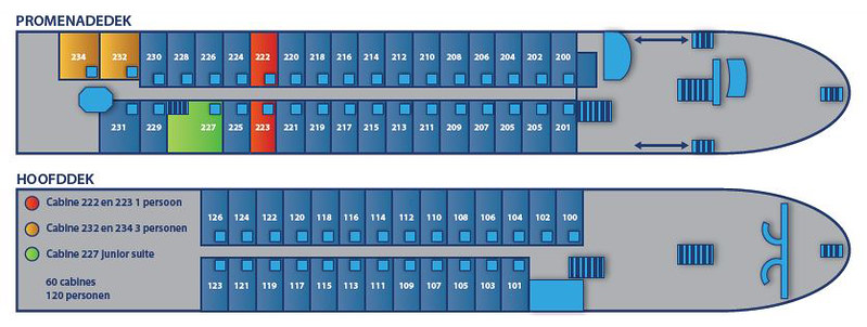 Kinderermäßigung: 20% bis 13 Jahre in einer 3-Bett-Kabine mit mind. 2 Vollzahlern